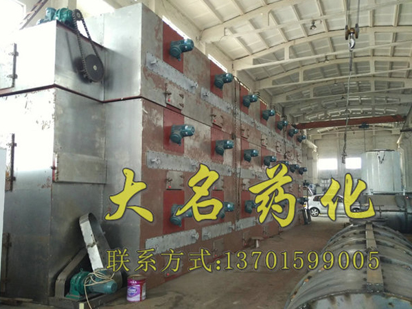 整個生產(chǎn)線為全封閉型(對物料而言),由擺動布料段、干燥段、出料段三部分組成。擺動布料段作用使海藻均勻分散在網(wǎng)板上,并且勻速輸送到干燥段,海藻經(jīng)過80℃熱風干燥段,90℃熱風干燥段和120℃熱風干燥段后,再經(jīng)過出料段排料。循環(huán)風向及各單元內(nèi)風的循環(huán)為向下式,即加熱后的空氣由引風機吸入,在風機出風口首先預分布再經(jīng)過孔板均風后,熱風從物料的下面向上(或從物料的上面向下)穿透物料層。